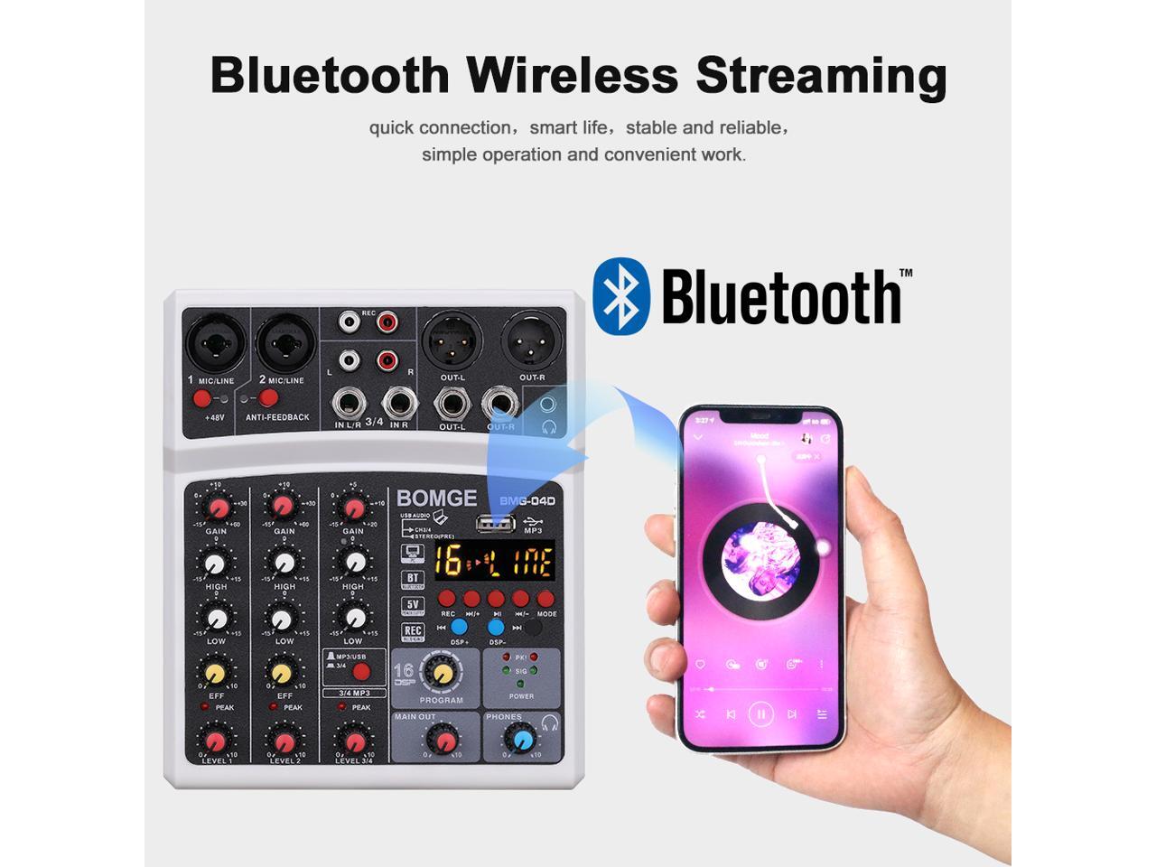 Bomge 4 Channels Audio Sound Mixer Mixing Dj Console Usb With 48v Phantom Power 16 Dsp Effects Pc Computer Recording Mp3 Bluetooth Newegg Com